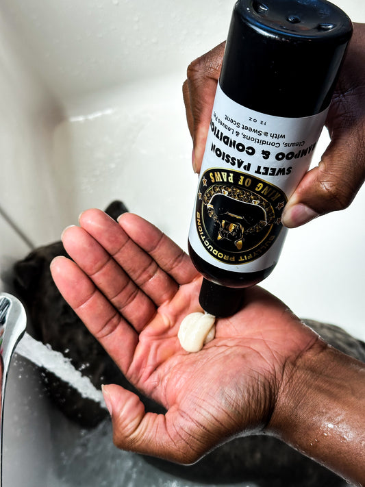 BullyFIT x King Of Paws Sweet Passion 5 in 1 Pet Shampoo & Conditioner 12oz | Organic Dog Shampoo for Sensitive Skin | Deodorizing |Detangling Pet Grooming Kit for All K9 Breeds| Cruelty Free | Vegan Friendly| Handcrafted | Holistic